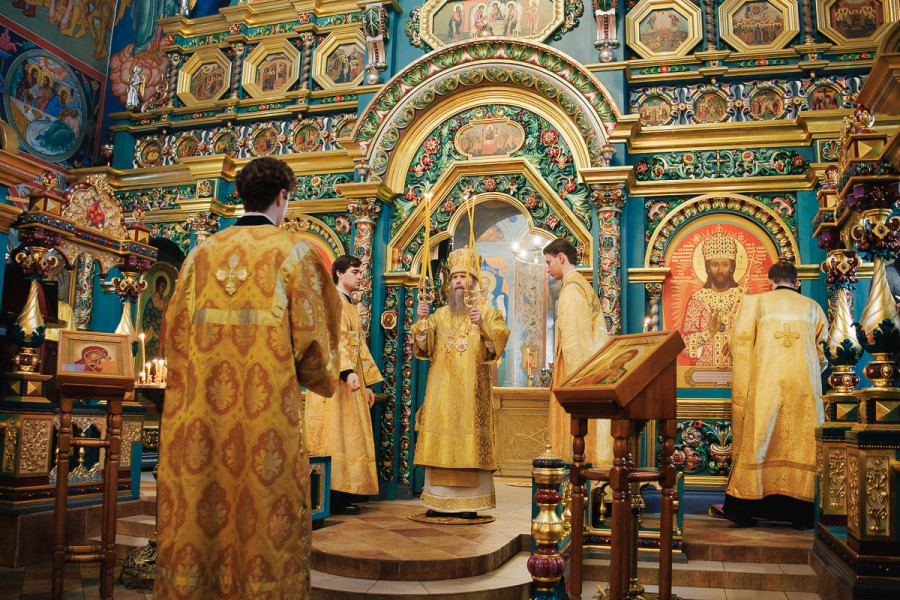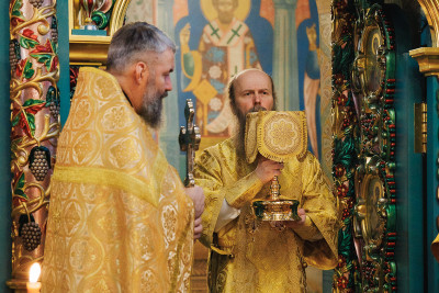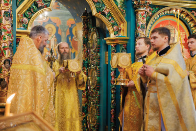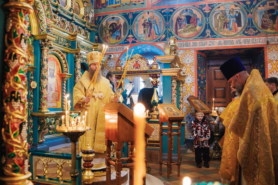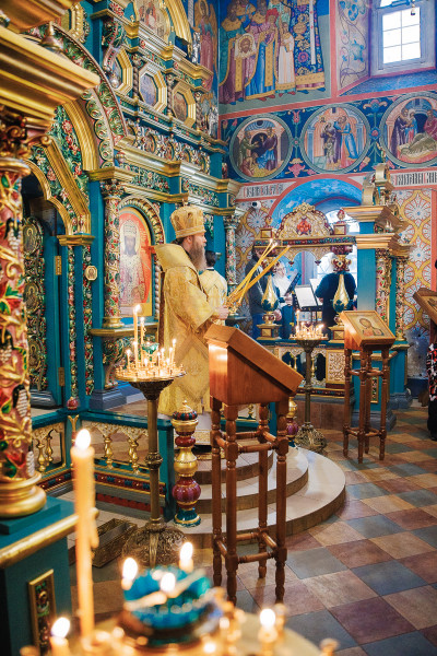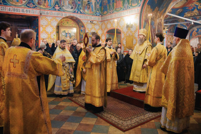 По окончании богослужения настоятель храма Николай Кондрашов обратился с теплой приветственной речью к Владыки, директор института Русского Афона Валерий Иванович Пирогов приподнес в дар книгу подготовленную и изданную институтом Русский Афон «Сокровенный мир Афона ХIХ-ХХ вв. Записки инока Святогорца».